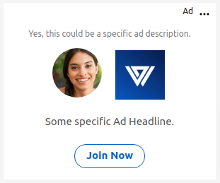 They are designed to leverage the user's own profile data alongside your brand's logo for maximum chance of a click. The ad also includes the user's first name and your organization.